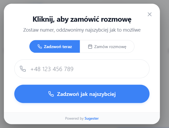 Widget Autocall umożliwia klientowi zamówienie rozmowy telefonicznej bezpośrednio ze strony internetowej. Wystarczy, że wpisze swój numer telefonu i wybierze połączenie „na teraz” lub na wybrany termin.