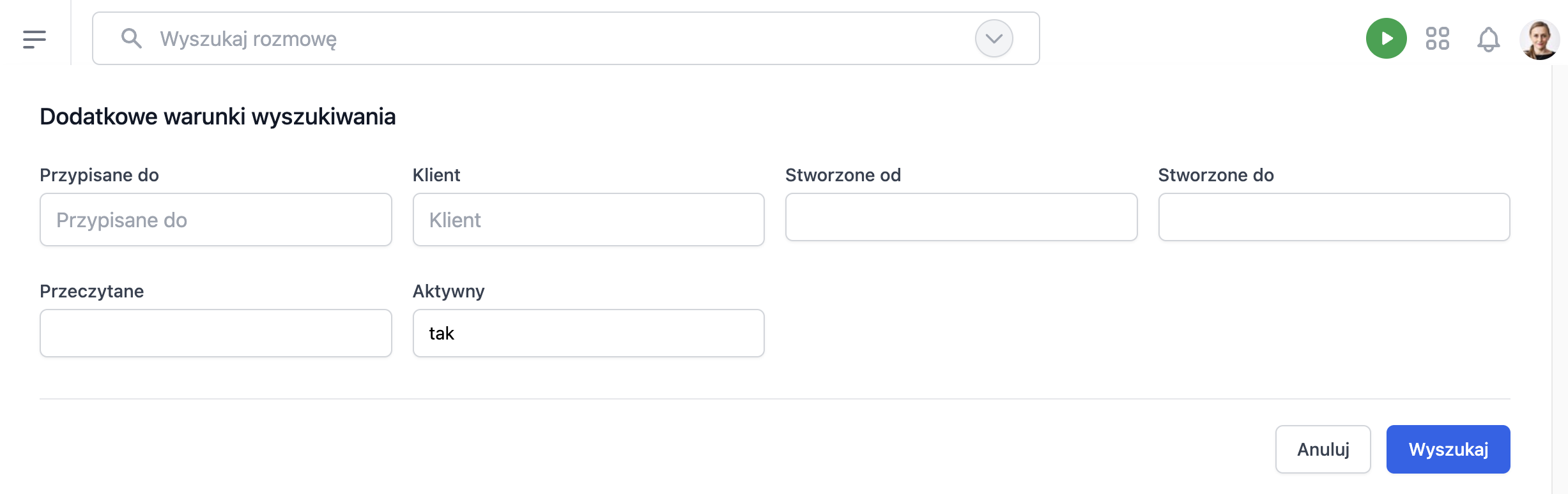 Wyszukiwarka jest podobnie jak tagi nowym elementem który dołączył do funkcjonalności czatu. Pozwala na przeszukanie wszystkich rozmów prowadzonych na czacie w kontekście wpisanej frazy.