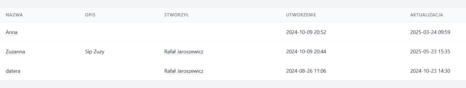 -Opis - pole przeznaczone na dodanie przez użytkownika opisu lub notatki do danego połączenia. Możliwe jest również dodawanie tagów w celu kategoryzacji rozmów.