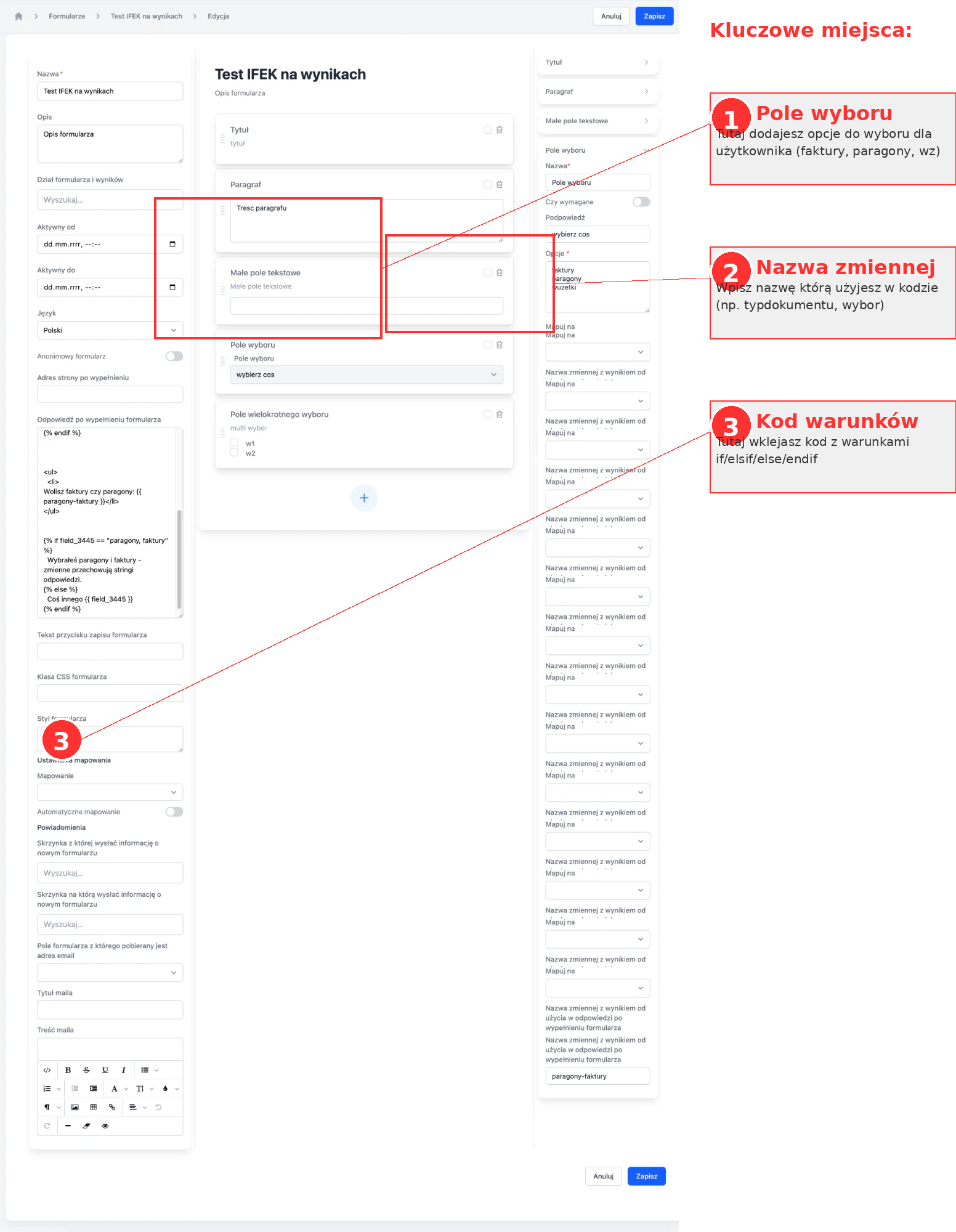 - Mapowanie pól formularza